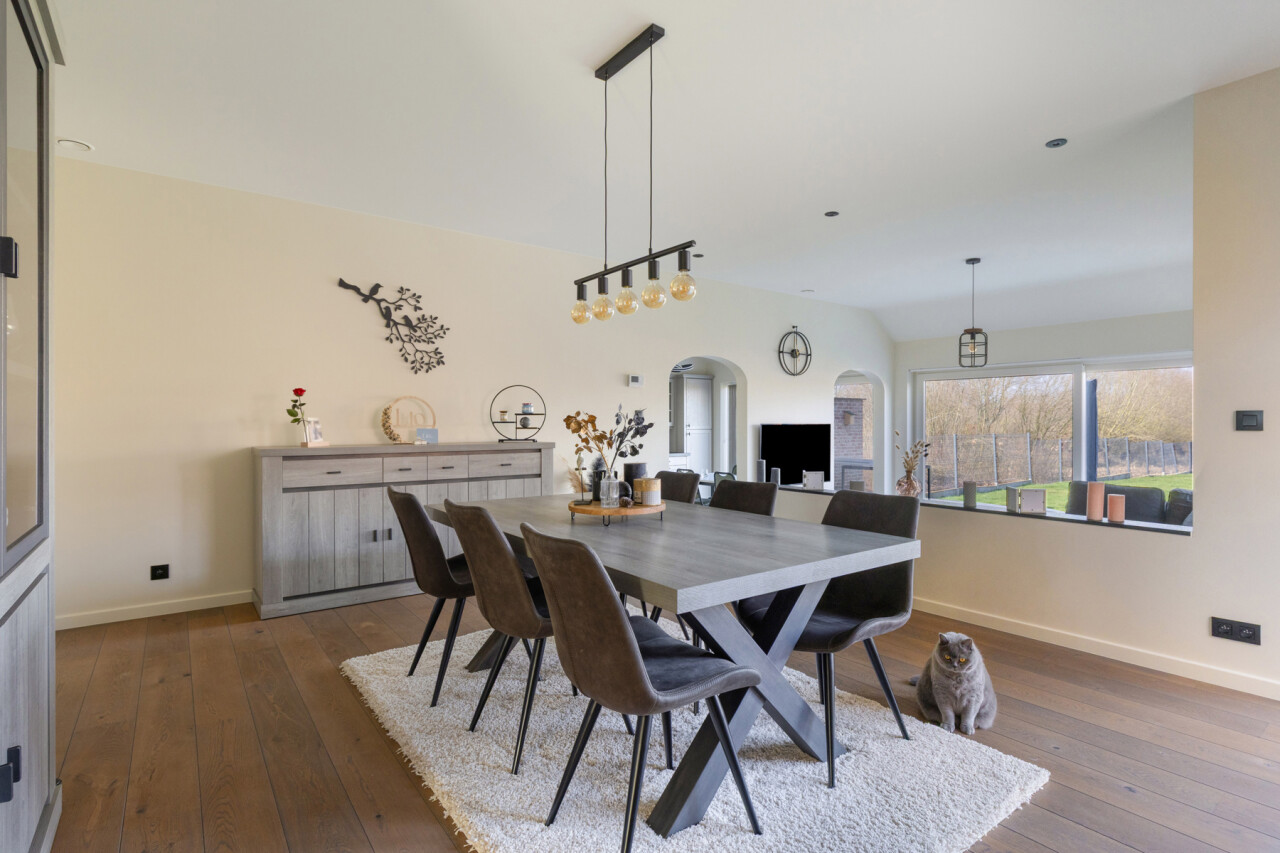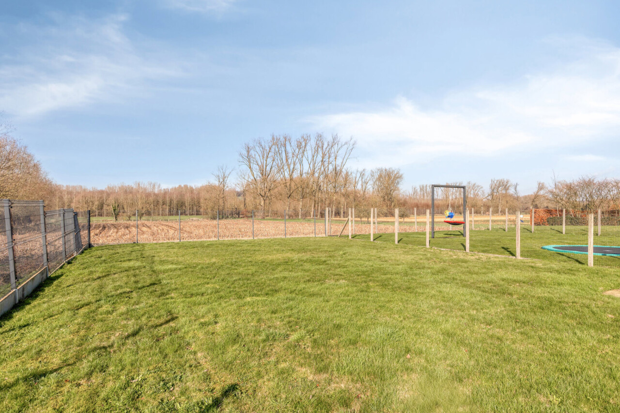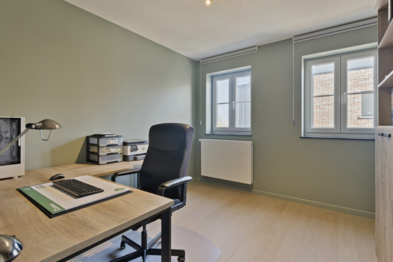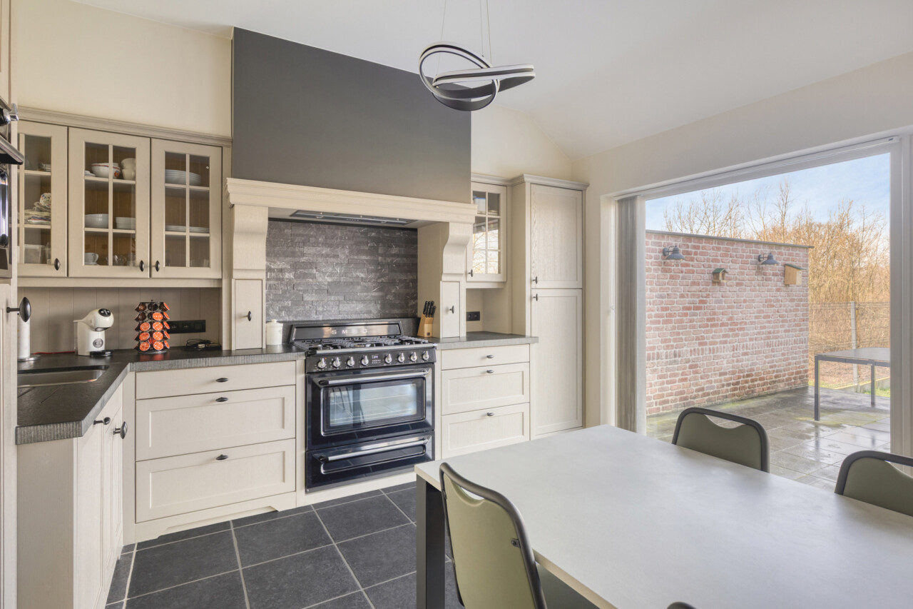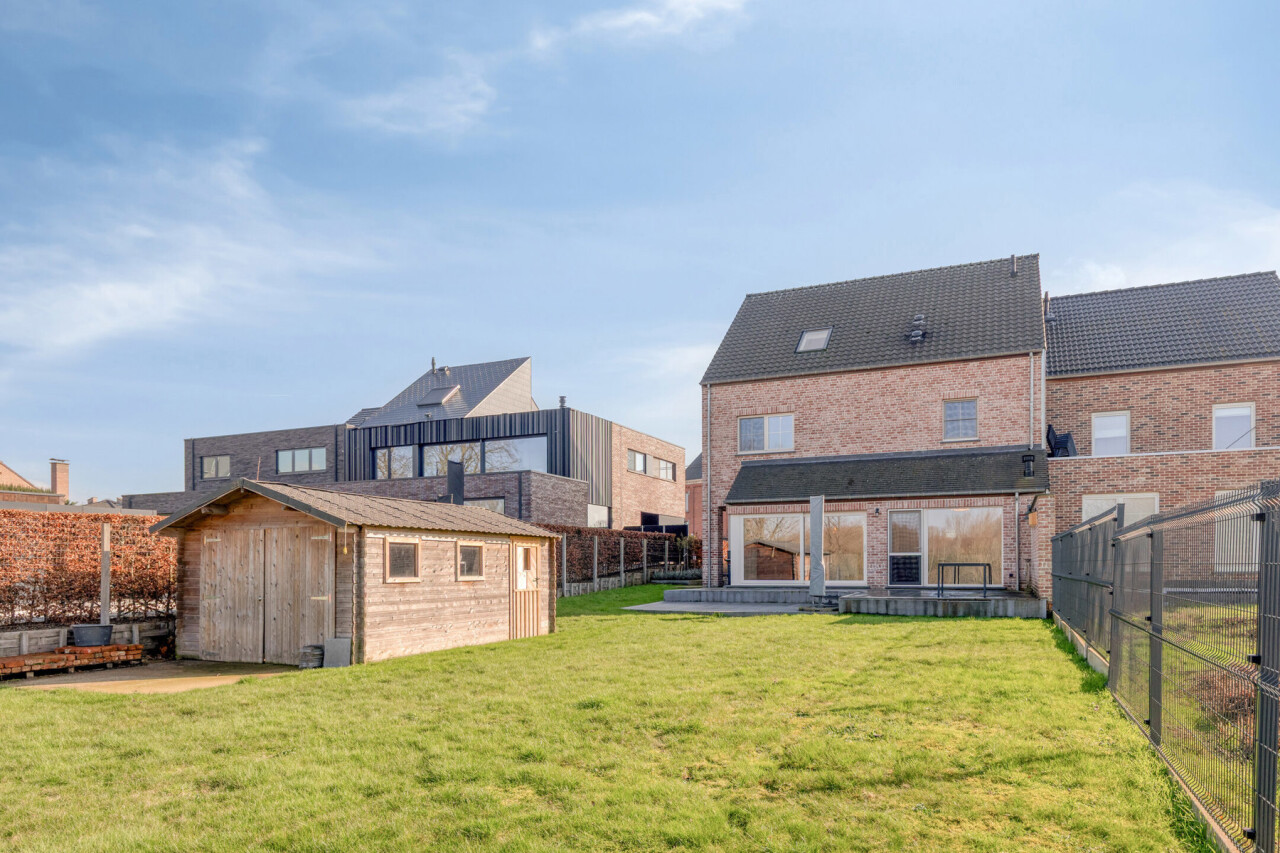 Deze halfopen bebouwing in pastorie-stijl, met bouwjaar 2016, staat op een perceel van 7a60, en heeft een bewoonbare oppervlakte van maar liefst 270 m2. Bij het betreden van de woning, komt u in de ruime inkomhal met gastentoilet. Er is een bureauruimte aanwezig vooraan in de woning. De leefruimte en de eetplaats staan in verbinding met de keuken en hebben zicht op de tuin. De volledig geïnstalleerde keuken is voorzien van SMEG-inbouwtoestellen (kookvuur op gas, 2 oven, combi-oven-microgolf, vaatwasmachine), die volledig past bij de stijl van de woning. Naast de keuken bevindt zich een handige opslagplaats/berging, en wasplaats, die aansluiting geven naar de garage. De garage is voorzien van een elektrische poort, alsook is er een laadpaal voorzien. Op het eerste verdiep bevinden zich 4 ruime slaapkamers, waarvan 1 master bedroom, voorzien van een grote dressing. De badkamer is voorzien van alle comfort (douche, ligbad en dubbele lavabo). Een apart toilet is tevens voorzien op dit verdiep. Met de vaste trap, kunt u naar het 2de verdiep waar een technische ruimte aanwezig is en een hobbykamer van 60m2 groot! Deze ruimte kan perfect heringedeeld worden voor extra kamers en een extra badkamer. Het zolderverdiep is toegankelijk via een uitschuifbare trap, ideaal en bruikbaar voor extra opslag.