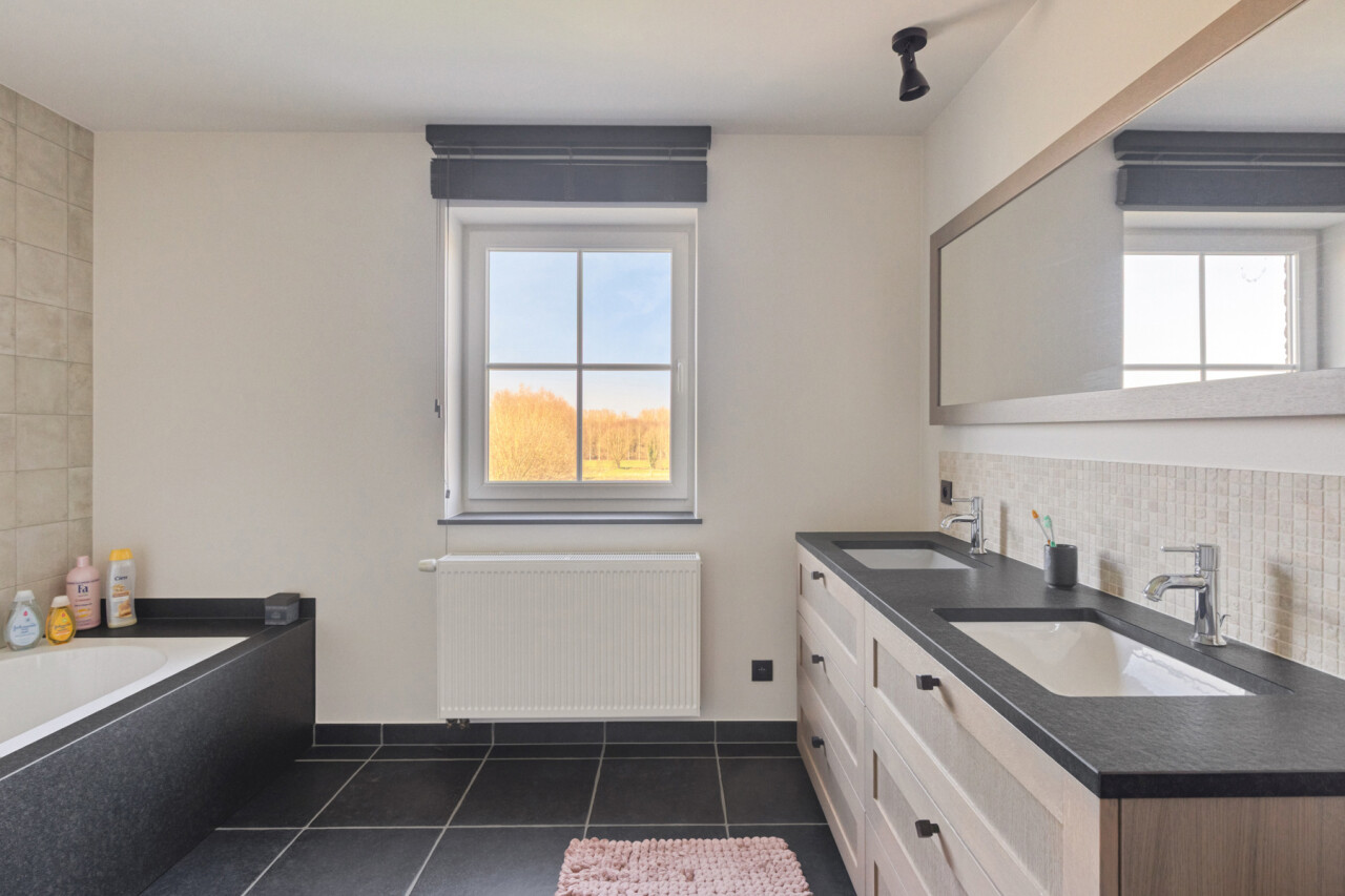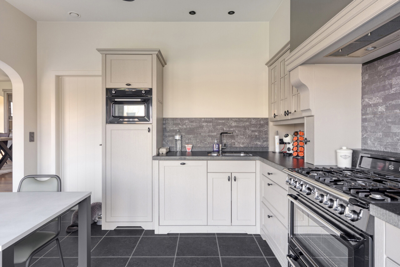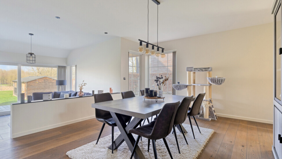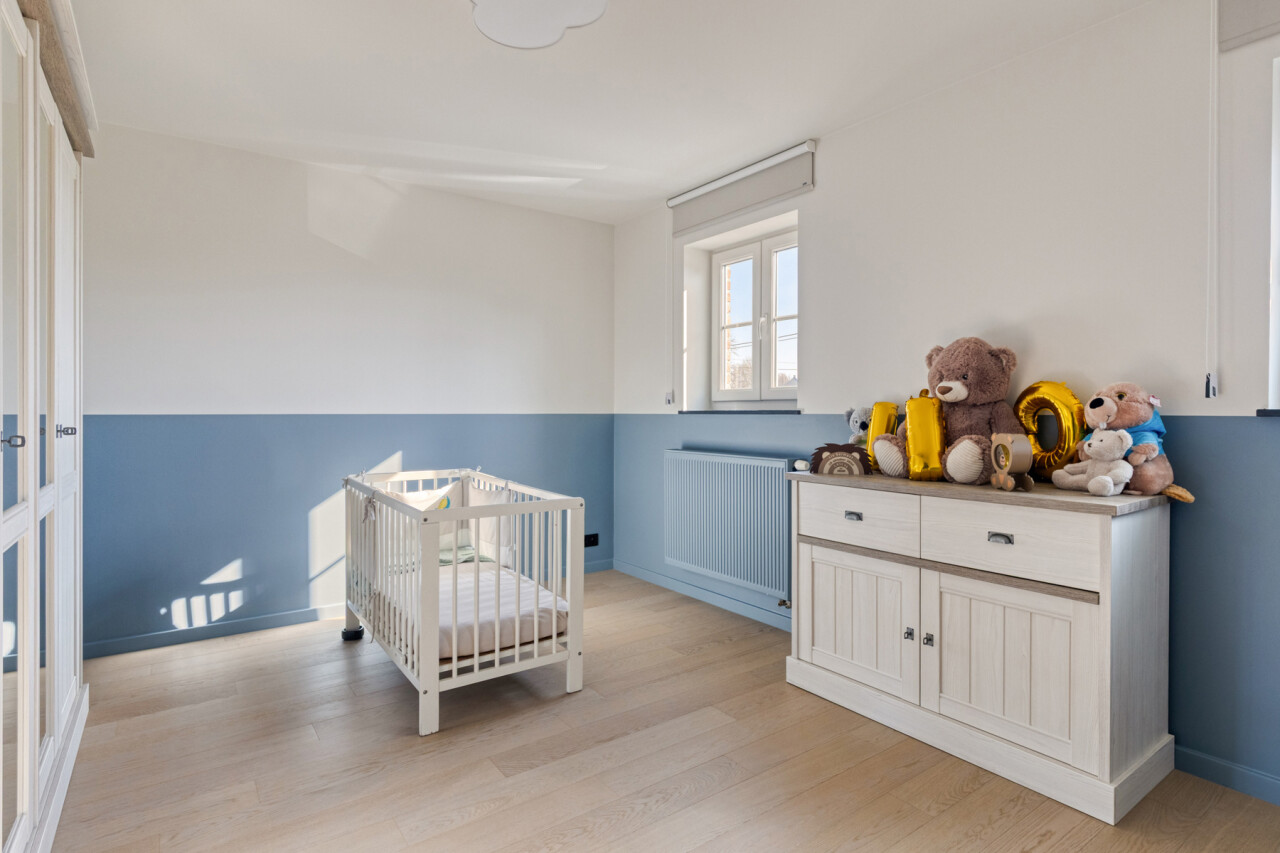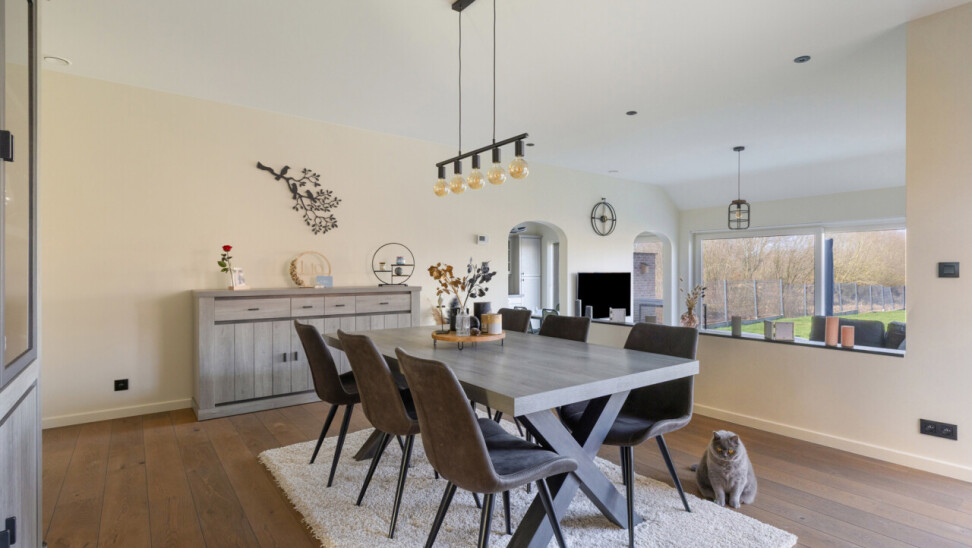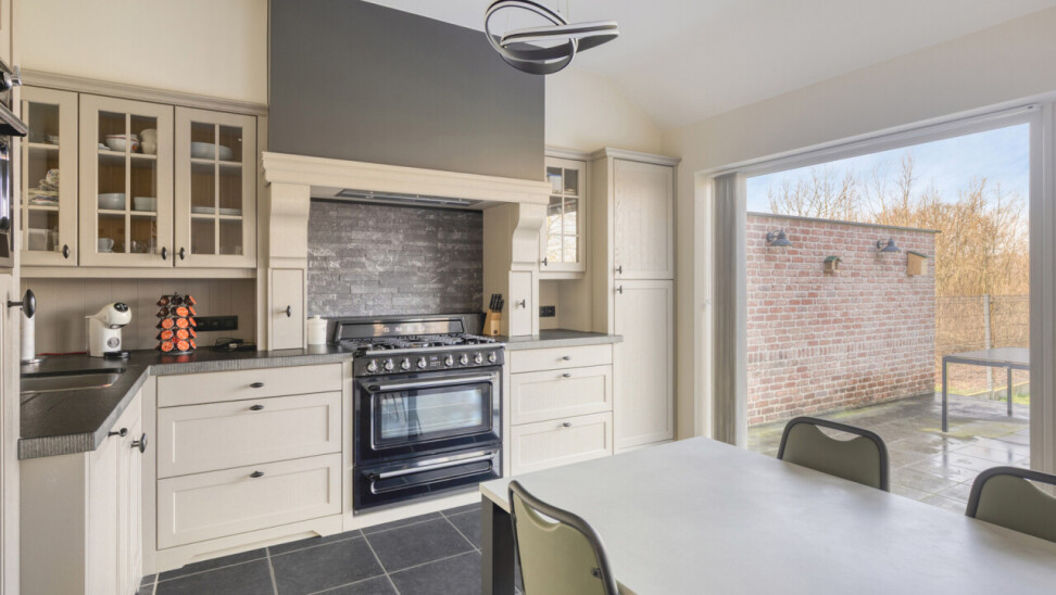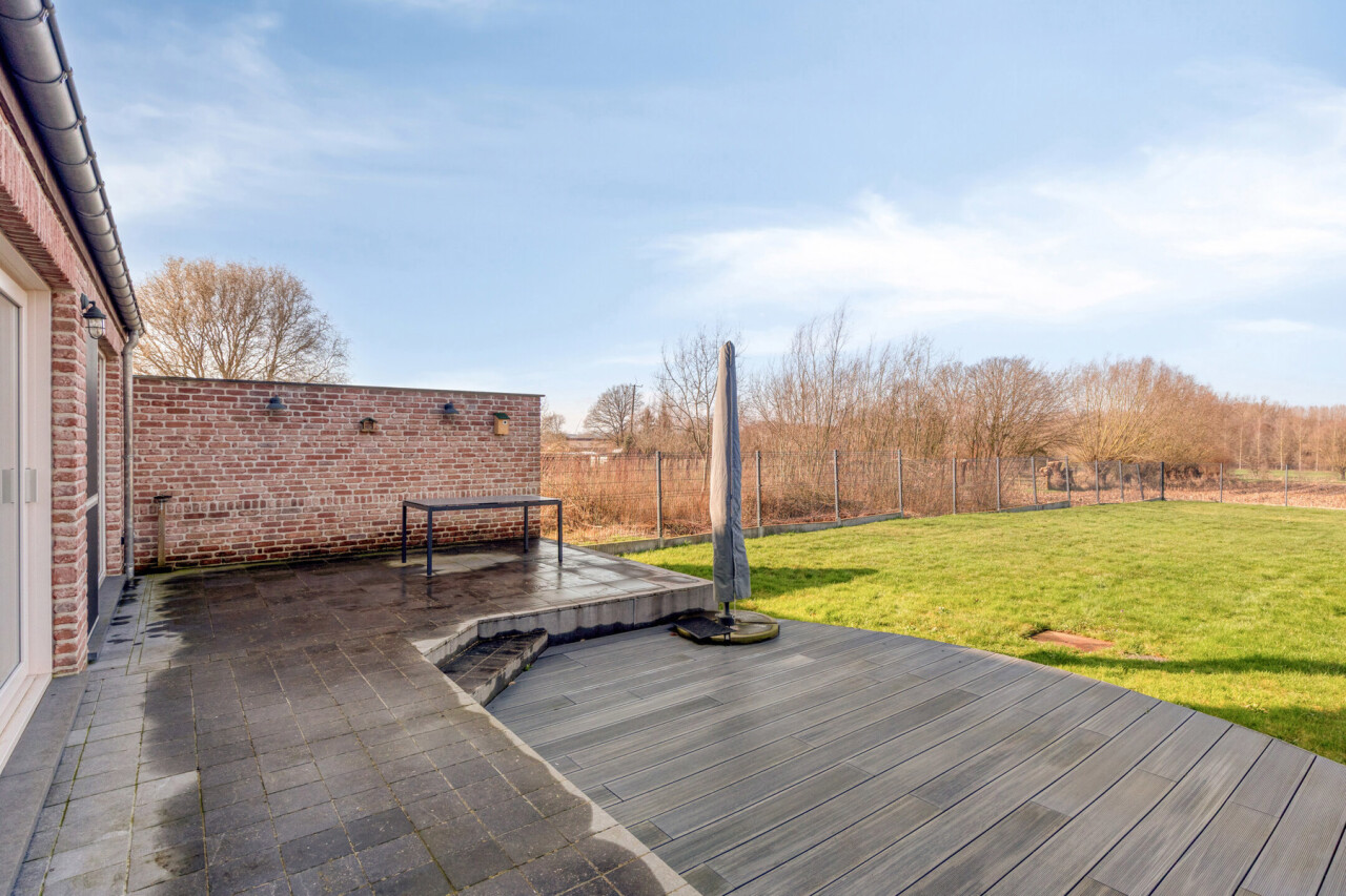Deze halfopen bebouwing in pastorie-stijl, met bouwjaar 2016, staat op een perceel van 7a60, en heeft een bewoonbare oppervlakte van maar liefst 270 m2. Bij het betreden van de woning, komt u in de ruime inkomhal met gastentoilet. Er is een bureauruimte aanwezig vooraan in de woning. De leefruimte en de eetplaats staan in verbinding met de keuken en hebben zicht op de tuin. De volledig geïnstalleerde keuken is voorzien van SMEG-inbouwtoestellen (kookvuur op gas, 2 oven, combi-oven-microgolf, vaatwasmachine), die volledig past bij de stijl van de woning. Naast de keuken bevindt zich een handige opslagplaats/berging, en wasplaats, die aansluiting geven naar de garage. De garage is voorzien van een elektrische poort, alsook is er een laadpaal voorzien. Op het eerste verdiep bevinden zich 4 ruime slaapkamers, waarvan 1 master bedroom, voorzien van een grote dressing. De badkamer is voorzien van alle comfort (douche, ligbad en dubbele lavabo). Een apart toilet is tevens voorzien op dit verdiep. Met de vaste trap, kunt u naar het 2de verdiep waar een technische ruimte aanwezig is en een hobbykamer van 60m2 groot! Deze ruimte kan perfect heringedeeld worden voor extra kamers en een extra badkamer. Het zolderverdiep is toegankelijk via een uitschuifbare trap, ideaal en bruikbaar voor extra opslag.