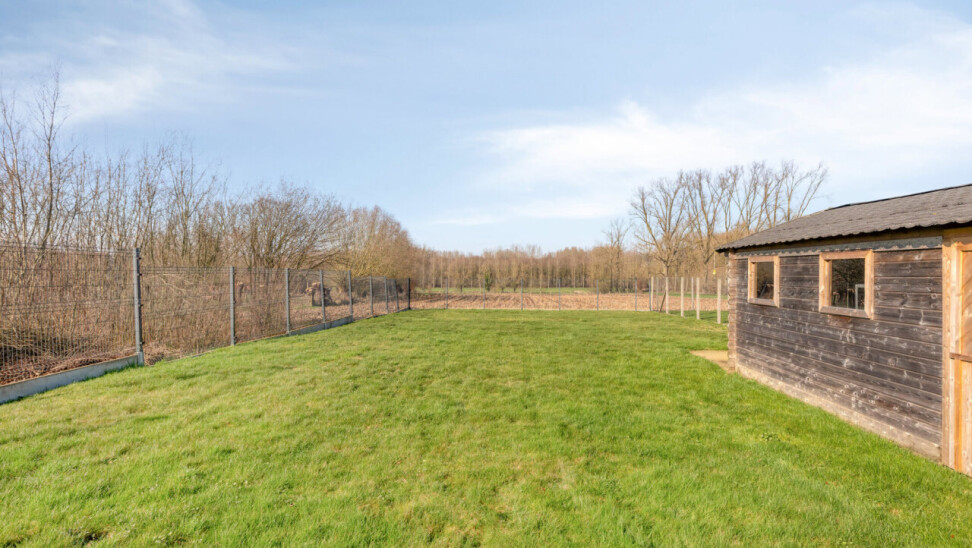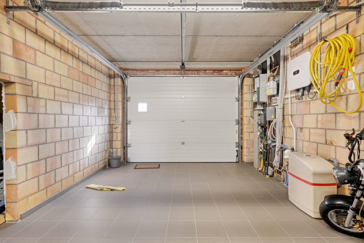 De oprit is toegankelijk en beschikt plaats voor 3 wagens. Via een zijpoort kan u rechtstreeks naar de tuin, die voorzien is van een ruim terras en tuinhuis.