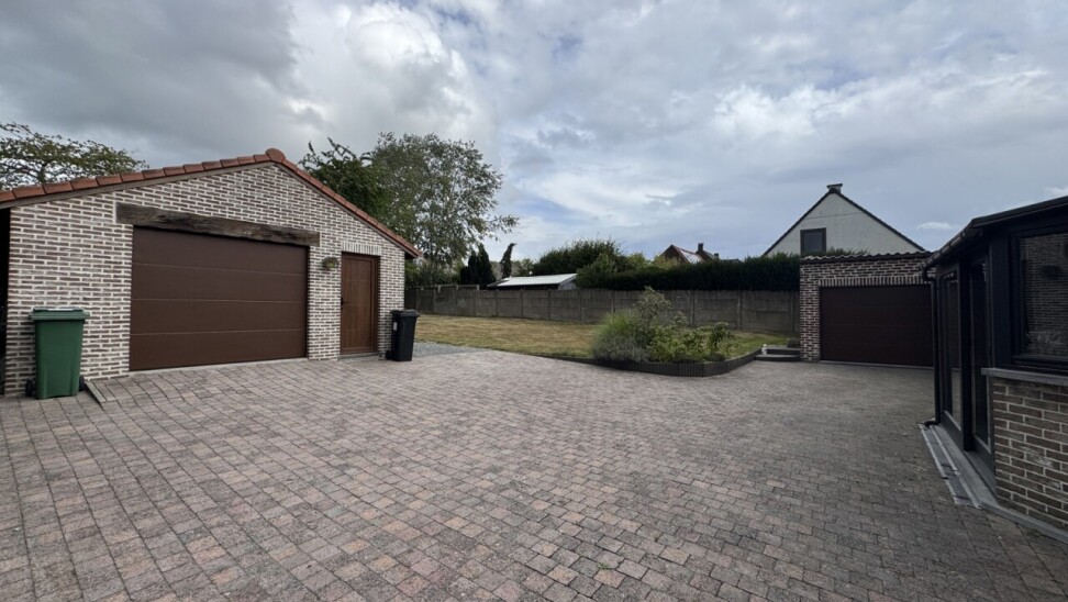 Er zijn 2 ruime garages aanwezig (1 inpandig, 1 aparte garage). Toegang via de oprit naast de woning, met elektrisch hekken.